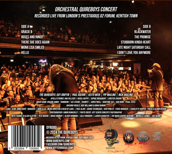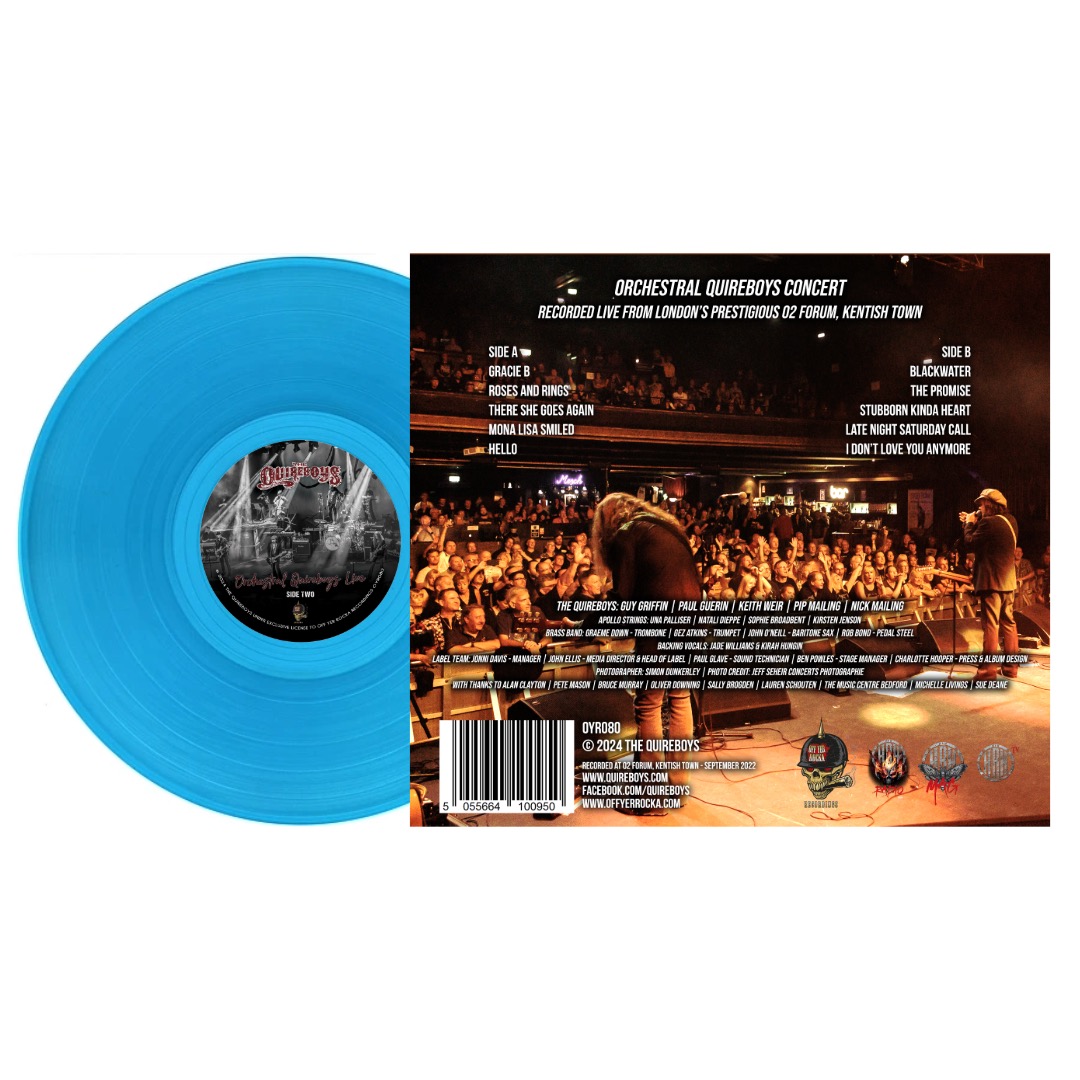 The brand new Orchestral Quireboys CD/DVD & vinyl bundle (limited edition coloured vinyl). This was recorded live at the gig at the O2 Forum, Kentish Town in London over the weekend of 3rd September 2022.